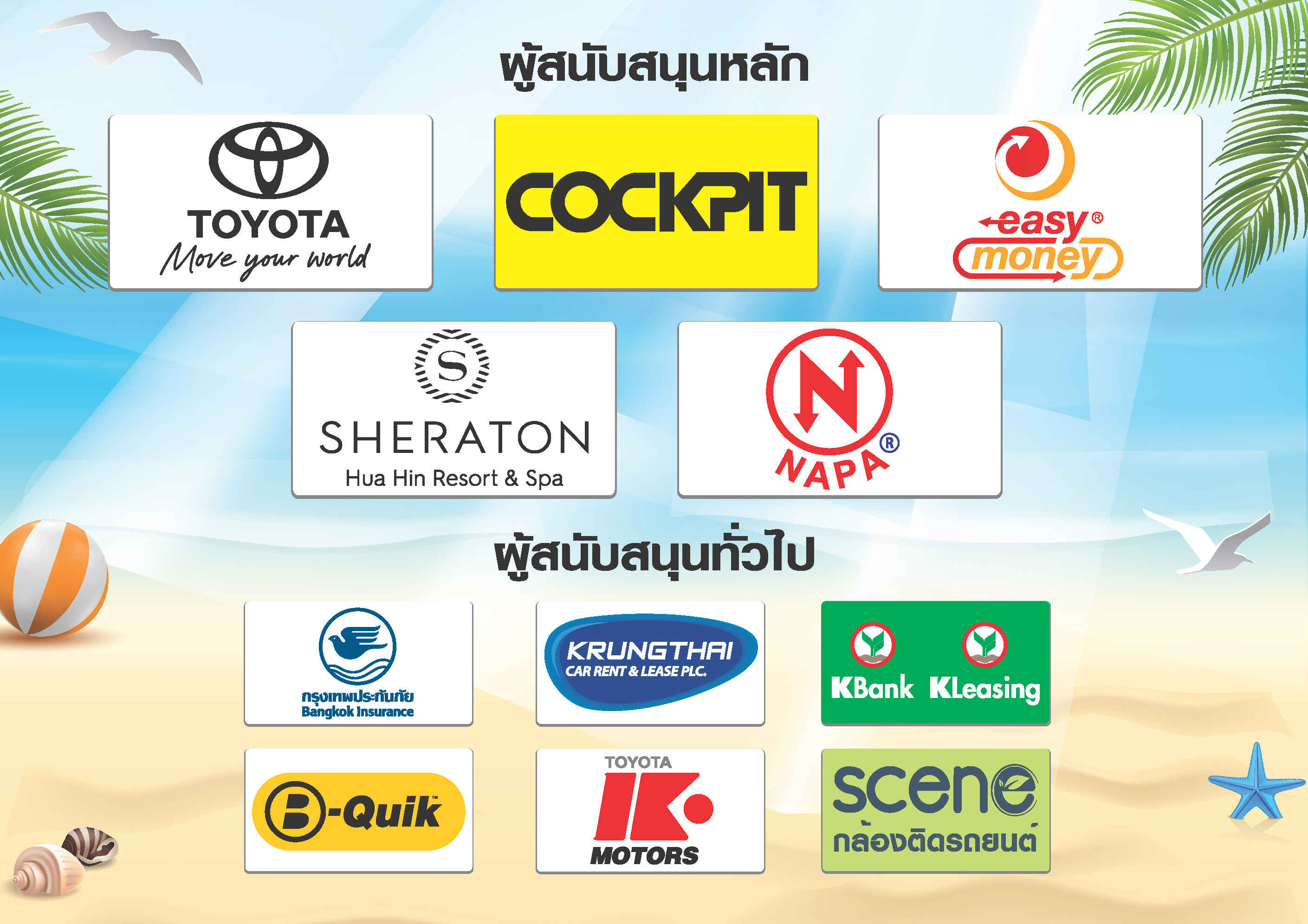 คุณประทีป โภคบูรณ์ ผู้จัดการฝ่ายบริการ โชว์รูม โตโยต้า วรจักร์ยนต์ (สาขาพระราม2) บริษัท โตโยต้า วรจักร์ยนต์ จำกัด เอื้อเฟื้อสถานที่ โชว์รูม โตโยต้า วรจักร์ยนต์ (สาขาพระราม2) และร่วมกันตีธงปล่อยรถเปิดการแข่งขันพร้อมทั้งสมาชิกอย่างพร้อมเพรียงและสนุกสนาน
