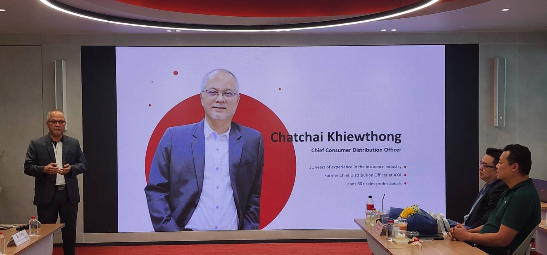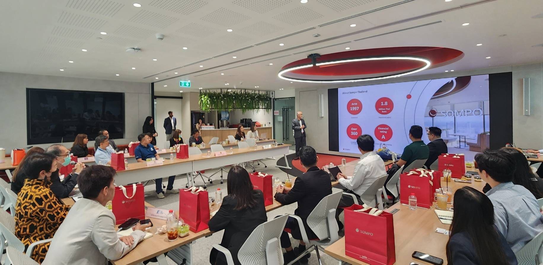 คุณฉัตรชัย เขียวทอง Chief Consumer Distribution Officer เป็นตัวแทนนำเสนอข้อมูลบริษัทและวิสัยทัศน์ในการดำเนินธุรกิจ เพื่อชี้ให้เห็นถึงความสำคัญของการมีคู่คิดทางธุรกิจที่เข้าใจกลไกความเสี่ยงในปัจจุบัน พร้อมกันนี้ ดร.นที วรรธนะโกวินท์ นายกสมาคม ได้กล่าวขอบคุณและมอบของที่ระลึกให้แก่ คุณฉัตรชัย เขียวทอง ตัวแทนจาก บริษัท ซมโปะ ประกันภัย (ประเทศไทย) จำกัด (มหาชน) ที่ให้เกียรติเป็นเจ้าภาพการจัดประชุมครั้งนี้